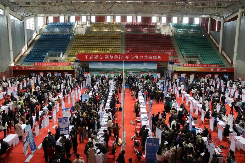 3月12日,内蒙古自治区2023届高校毕业生春季促就业攻坚行动暨js3845金沙线路2023届毕业生春季双选洽谈会在校体育馆举行。