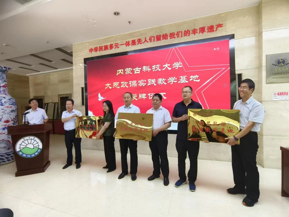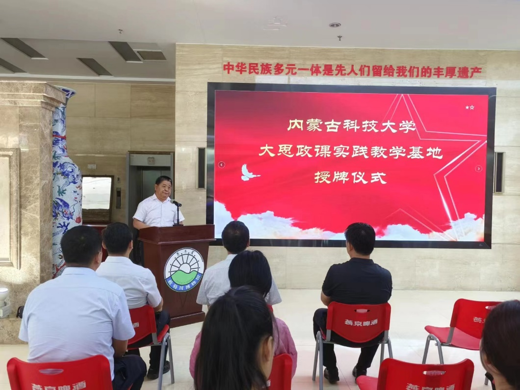 8月22日,js3845金沙线路与土右旗“大思政课”实践教学基地授牌仪式在土右旗敕勒川博物馆举行。校党委副书记冯志强,统战部副部长王秀莉,马克思主义学院院长张光存、副书记副院长柴艳莎,土右旗旗委副书记张慧东,统战部副部长、民委主任王猛,土右旗敕勒川博物馆、文投公司、九峰山生态管委会等部门主要负责人和我校教师代表共同参加授牌仪式。