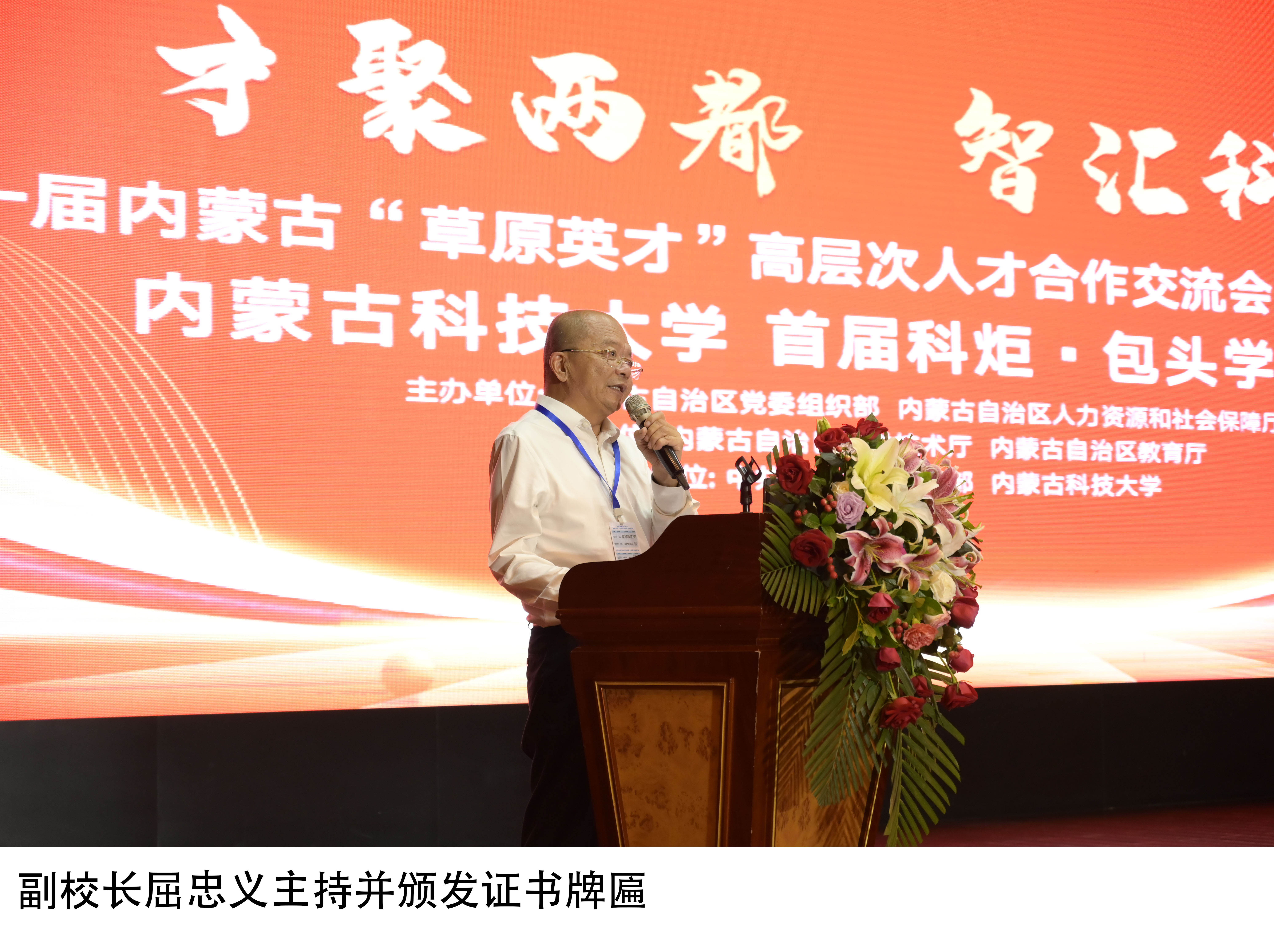 本次论坛是第十一届内蒙古“草原英才”高层次人才合作交流会暨人才创新创业周系列活动之一,是学校大力实施“人才强校”战略、广聚天下英才的务实举措,是学校站在新的历史起点上发出的引才聚才最强音。校党委副书记冯志强致辞,副校长屈忠义主持论坛并为第十二届“草原英才”工程获得者颁发证书牌匾。