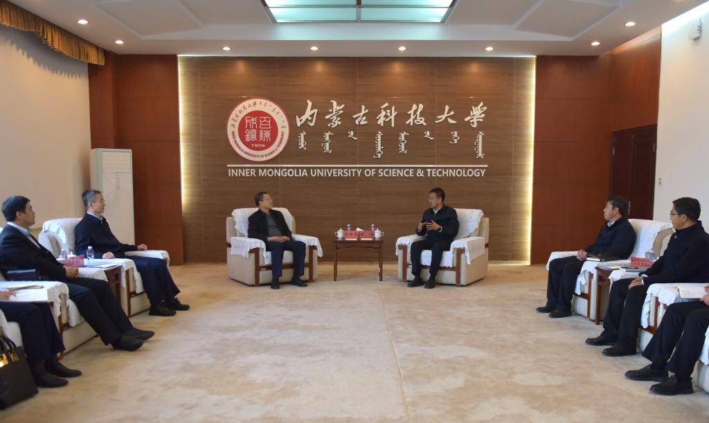 成涛对武贵龙一行来访表示欢迎,对北京科技大学长期以来对学校的关心支持表示感谢。他说,北科大与内科大的友谊历久弥坚,共同见证着“求实鼎新”与“百炼成钢”的传承和发展,新时期内科大在自治区落实“五大任务”和“两个稀土基地”建设中努力找位置、找任务,确立了“五新”发展思路,力争在区域经济社会发展中展现新作为,推动学校各项事业再上新台阶。希望北科大给予更多的支持和帮助,两校手拉手在服务国家战略和区域经济发展中贡献力量。