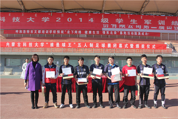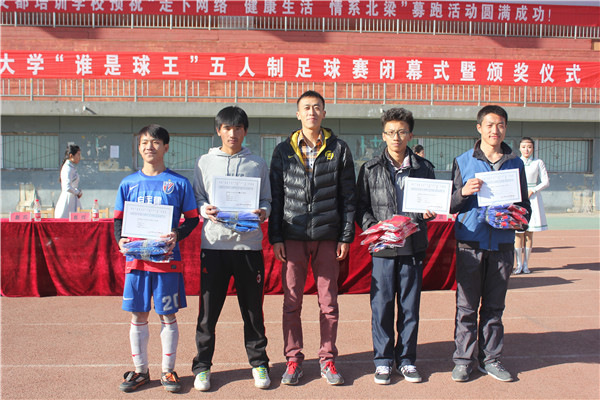 11月23日,我校“谁是球王”五人制足球赛落下帷幕。校团委、体育教学部相关负责人及各参赛球队参加闭幕式。