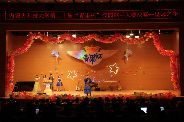 比赛分为“青果之恋”,“青果之泪”,“青果之颠”三个环节。经过激烈的角逐,由评委老师和大众评审共同打分,最终建工学院吕方获得本届比赛冠军,艺术与设计学院莫日根高娃获得亚军,矿业与煤碳学院陈诣博获得季军。国际学院钱薪禧、艺术与设计学院吴帅、信息学院李宁、经管学院葛雨婷、信息学院赵进文、建工学院塔米尔、艺术与设计学院杨坤、文法学院苏音格获得校园十佳歌手称号。