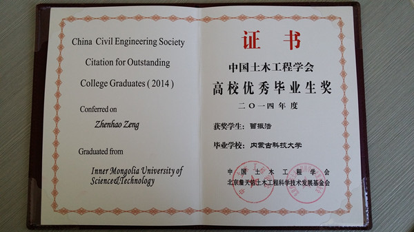 日前,2014年中国土木工程学会高校优秀毕业生奖评选结果揭晓,我校建工学院工程管理专业2010级本科生曾振浩同学当选。11月22日,第七届工程管理院长(系主任)会议在深圳大学召开并现场颁奖。
