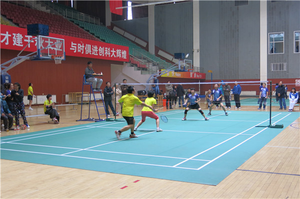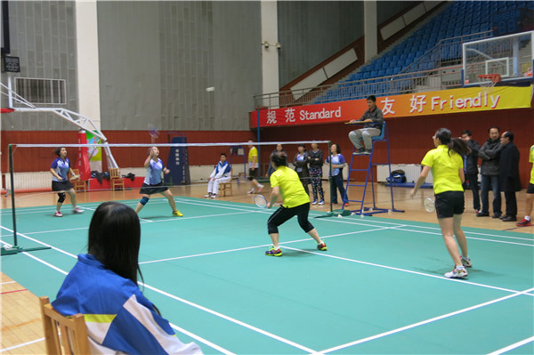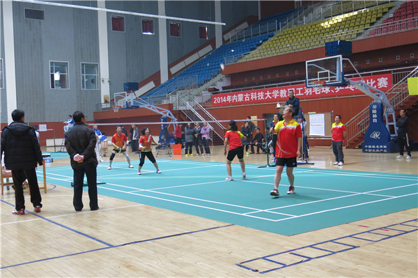 12月8日,由校工会主办、体育部分会承办、大学生体育协会协办的我校2014年教职工羽毛球双打团体赛在校体育馆乒羽馆开赛。共有来自16个分会220多名教职工报名参加比赛。
