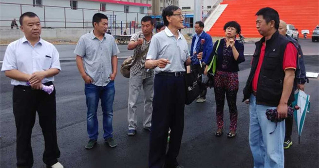孟教授就我校田径、足球场地塑胶、颗粒等材料配比,国际认证标准等场地建设问题进行指导。现场考察完毕后,孟教授参加我校体育场地建设研讨会,并就体育场地建设后续改进工作提供具体方案。