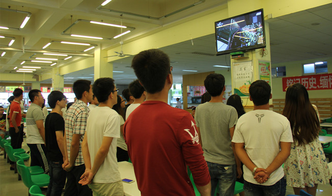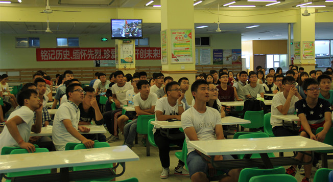 9月3日,为纪念中国人民抗日战争暨世界反法西斯战争胜利70周年,激励全校学生铭记历史、缅怀先烈、珍爱和平、开创未来,我校学生积极响应学校的号召,自发聚集在活动中心广场、第二教学楼广场LED屏幕、梅园餐厅,和园餐厅和颐园餐厅等地观看本次纪念大会的现场直播。