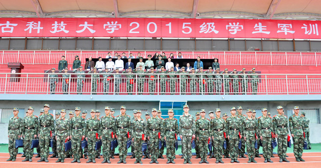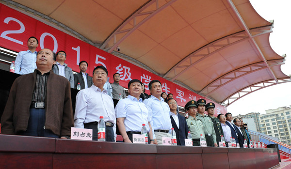 9月9日上午9时,我校2015级学生军训开训式在校田径场隆重举行,武警包头市支队政委吴建光上校、包头市昆区人民武装部政委段占峰上校、校党政领导李国雄、任慧平、吕晓琪、李斌,副校长张连红、校长助理杨家庆,党政办公室、学工部、教务处、招就处、保卫处及各学院相关负责人出席开训式。
