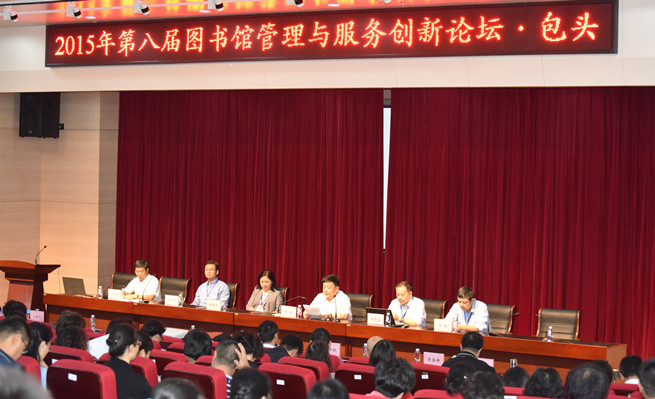 9月10日上午,“全国第八届图书馆管理与服务创新论坛”学术会议在我校图书馆学术报告厅召开。本次会议由教育部高等学校图书情报工作指导委员会、中国图书馆学会高等学校图书馆分会、上海交通大学图书馆主办,我校图书馆承办。清华大学图书馆馆长邓景康、香港理工大学图书馆馆长黄朝荣、北京大学图书馆副馆长陈凌、东北师范大学图书馆馆长刘万国及全国各地高校图书馆馆长、副馆长、研究员近200人参加会议,此外,自治区、包头市(区)图书馆界同仁及出版书商、数据库公司代表也参加本次会议。