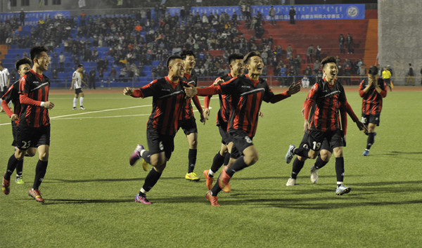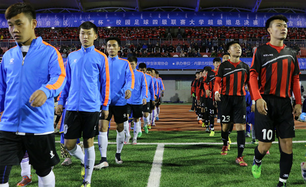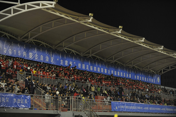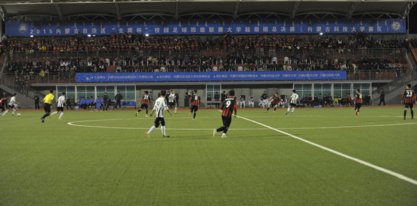 10月12日晚19点30分,在我校主校区体育场迎来2015年内蒙古自治区“主席杯”校园足球四级联赛大学超级组总决赛的首场比赛。本场比赛由我校足球队主场对阵内蒙古师范大学足球队。