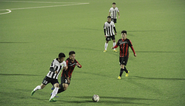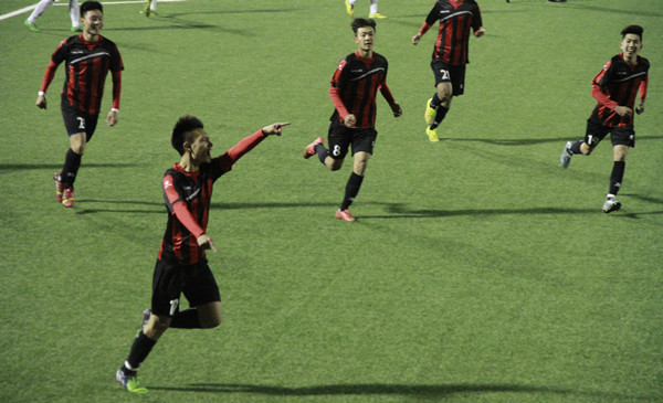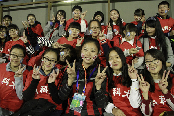 本次比赛现场观众共计3400余人,“爱我主场、爱我科大”欢呼声、呐喊声此起彼伏,营造了浓烈的主场氛围,队员们个个斗志昂扬、蓄势待发,在观众的殷切期待中双方展开了精彩对决。开场比赛节奏很快,双方各有攻势,但成效均不显著。比赛的第16分钟,我校19号郑宏球门前一记轻巧的吊射为我校首开记录,上半场结束前师大攻入一球将比分扳成1比1平。下半场由于师大队员禁区内的手球犯规及我校补射一次任意球,比分为3比1。此后师大利用一次反击将比分扩进为3比2,在比赛的最后一分钟我校再入一球,将比分最终定格在4比2。