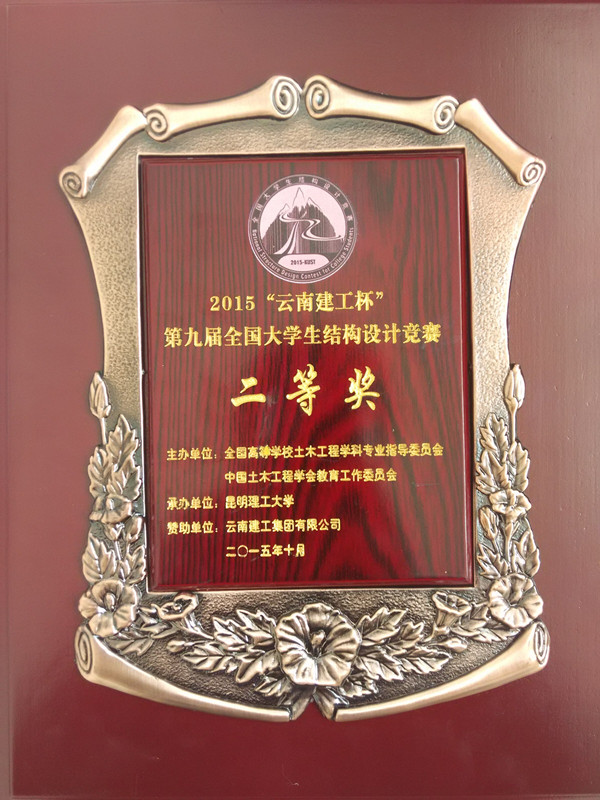 我校建工学院张玥、曹芙波老师指导的土木工程14级学生赵帅、彭强、韩文超同学完成的作品获得本次竞赛的二等奖。