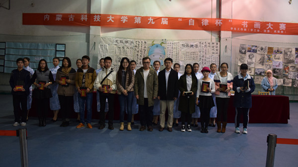 11月14日上午,由校学工部主办,大学生自律委员会承办的主题为“笔走乾坤恢弘气,墨染科大金秋时”的第九届“自律杯”书画大赛在体育馆地下网球场举办。学工部、学报编辑部、艺术与设计学院相关负责人担任评委。