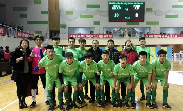 12月15日—21日,2015—2016年度“农信杯”内蒙古大学生室内五人制足球比赛在呼和浩特民族学院举行,共有来自全区10所高校参赛。我校男子足球队作为参赛队伍之一,历经7天不败战绩,披荆斩棘,荣获冠军。内蒙古大学、内蒙古师范大学、包头师范学院分获二、三、四名。