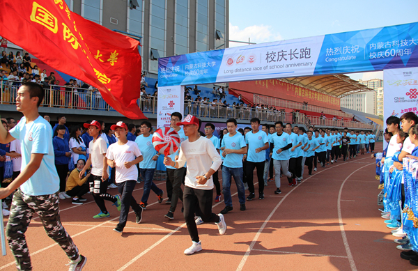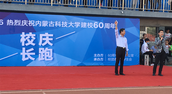 9月22日,科大迎来她的六十华诞。当天下午3点,由校团委主办、校学生会承办的“与你同行”——校庆长跑活动启动仪式在田径场内隆重举行。校党委副书记、常务副校长安胜利到场为本次长跑打响发令枪。