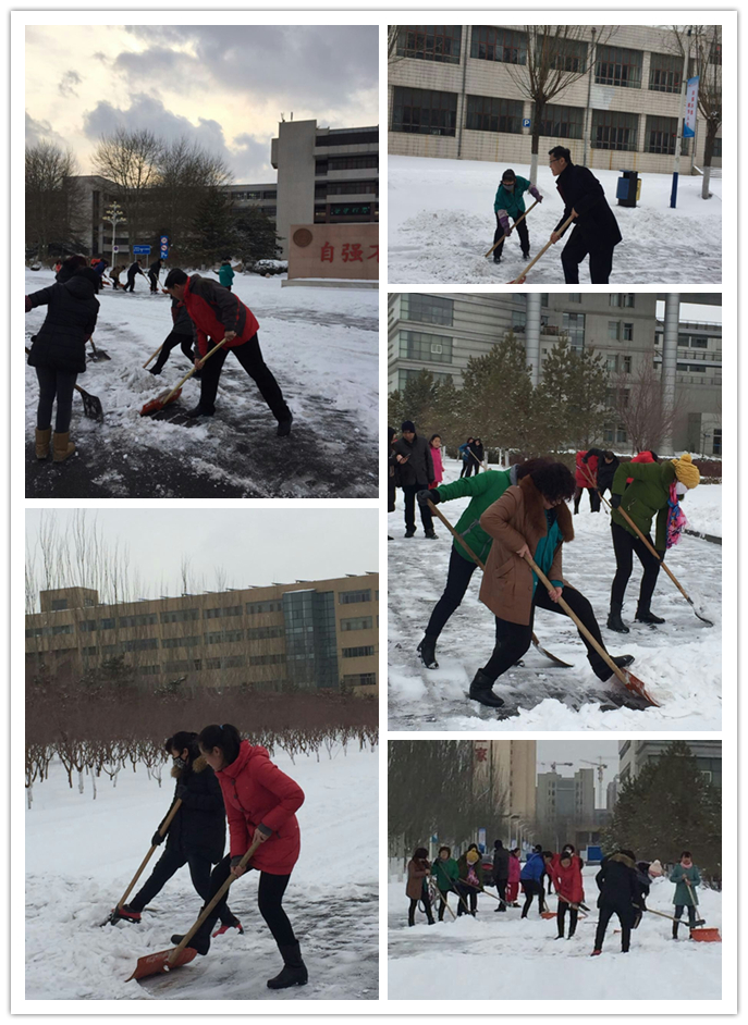 2月21日,一场突如其来的大雪让鹿城银装素裹,宛如童话世界。我校正值新学期开学之际,为确保师生安全顺利返校,21日一早,后勤处积极应对,认真安排部署,及时清理校园积雪。截止21日晚,校园内及家属院的主要路段、出入学生宿舍的各条通道,已全部贯通。