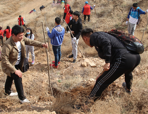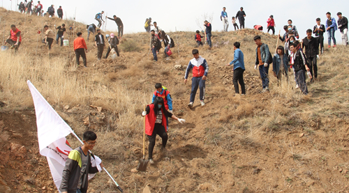 4月15日上午,我校第九期青马班全体学员参加了由包头义工组织的在大青山庚毗沟举办的植树活动。
