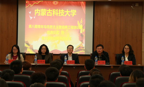近日,我校第八期“青年马克思主义者培养工程”培训班结课仪式暨第九期培训班开班仪式在图书馆多功能厅举行。校党委常委、副校长杨建林,昆区组织部副部长李强,校学生工作委员会、党委组织部、校团委相关负责人参加仪式。