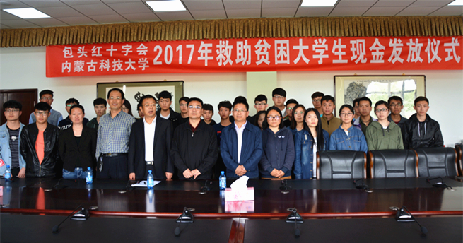 5月4日下午,包头市红十字会2017年救助贫困大学生现金发放仪式在我校行政楼A205会议室举行。校工会、学工部、生命科学与技术学院相关负责人及工作人员、学生代表参加救助金颁发仪式。