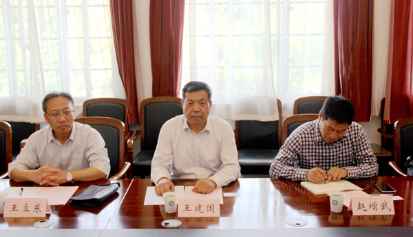 王建国简要介绍了学校基本情况和科研管理、科技成果转化方面取得的成绩及遇到的问题,并阐明本次调研主要目的:科研管理、科技成果转化、科技人员评价等方面的具体举措和成效。