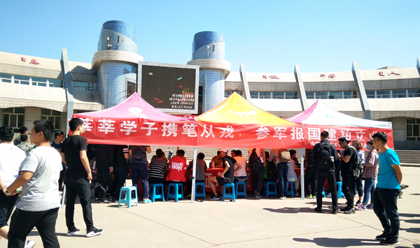 5月24日,我校征兵工作站在活动中心广场组织开展了大型征兵宣传活动,校学工部相关负责人、征兵工作负责老师和我校部分退役士兵到征兵工作站宣讲,包头市昆区人民武装部政委段占峰上校一行应邀进站,专程为我校有志应征大学生提供现场咨询。