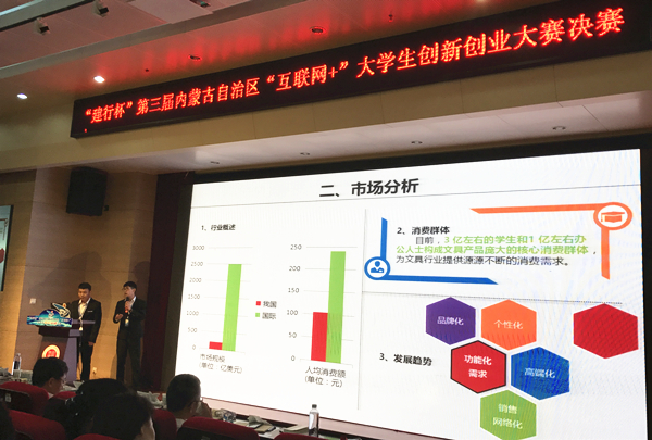今年4月启动以来,该项赛事受到了社会各界的广泛关注和创业学子的积极参与,共收到来自全区35所高校、6590个项目、24664人次报名参赛。最终,600项作品进入区赛,60项作品进入决赛,经过激烈角逐,我校的“内蒙古牧区民宿旅游服务系统设计”、“新型有机农业”、“沙地生态环境监测与治理有限公司”、“起创中文网”4个项目摘得大赛金奖。