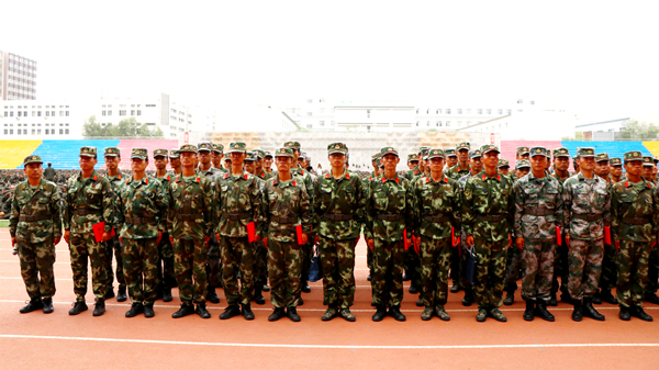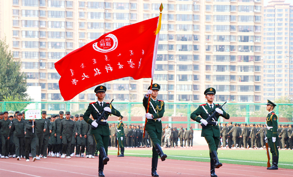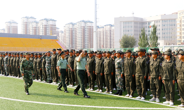 9月15日下午,我校2017级学生军训结训式在校田径场隆重举行。包头军分区副司令员韩秋岐上校、武警包头支队政委刘玉柱上校、包头市昆区人民武装部部长卢伟上校,校党委常委、副校长吕晓琪,校党委常委、副校长李斌,校党委常委、组织部部长冯志强,校党委常委、宣传部部长杨家庆,学生工作委员会、党政办公室、招就处、保卫处相关负责人出席结训式。