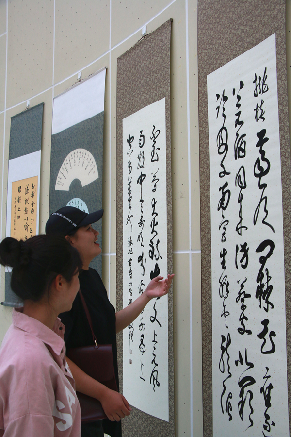 集报展区所展示的老报刊年代横跨近一个世纪,直观呈现出各个时期的历史变革与发展变迁。潘效轶教授所展的书法作品集纂隶楷行草五种书体,博采众长,令人叹为观止。在书画作品展区,180余幅风格各异的作品气象万千、异彩纷呈,不同侧面反映出了书画家对生命的热爱和对美好生活的憧憬。鹿阳书画院的10位老书画家现场泼墨创作,让我校师生有了一次近距离感受书画艺术的特别体验。