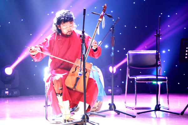 这是一场品味经典艺术的演奏盛会,这是一场豪放又不失柔情的马头琴音乐之旅。9月25日晚,由校党委宣传部主办,工会、团委、艺术与设计学院共同承办的“优秀经典歌舞进校园”之中蒙国际马头琴音乐会在我校音乐厅举行,蒙古国著名马头琴演奏家新·朝克,齐·宝力高亲传弟子齐·布赫及其弟子,包头市马头琴协会副会长都荣为我校的500余名师生带来了一场精妙绝伦的视听盛宴。