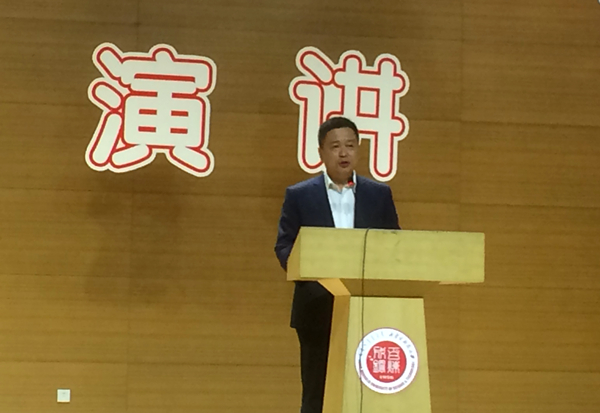 任慧平致辞。他表示“校长杯”英语演讲大赛已经成功举办了十届,不仅丰富了我校校园文化,为学生提供了展示英语演讲能力的平台,同时大赛也是对我校外语教学改革成果的一次重要展示,希望选手们通过参加演讲比赛提高英语演讲技能。