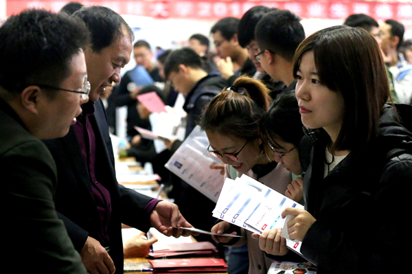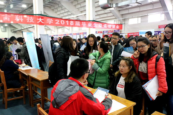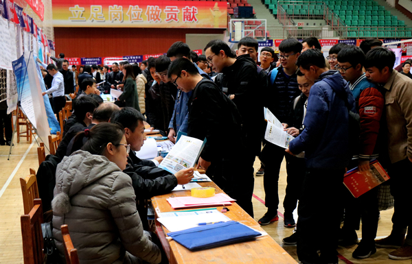 11月9日,我校2018届毕业生双选洽谈会在校体育馆举行。来自北京、上海、广东、福建、河北、江苏、天津、浙江、内蒙古等20余个省市自治区的585家用人单位提供了19350个就业岗位,行业覆盖冶金、矿业、机械制造业、金融、市场营销、教育培训、医疗卫生、互联网等15个大类。我校和其它高校8000余名毕业生参会。