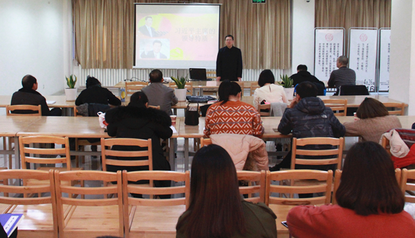 为深入学习宣传贯彻党的十九大精神,领悟习近平总书记的领导魅力,12月5日下午3点,思想政治教育专门委员会在习近平新时代中国特色社会主义思想协同学习中心举办了习近平总书记领导特质分享会。校党委常委、副校长杨建林,思想政治教育专门委员会、校团委全体成员,第九期青年马克思主义培养工程部分学员以及16级人力资源管理专业部分学生参加了本次分享会。