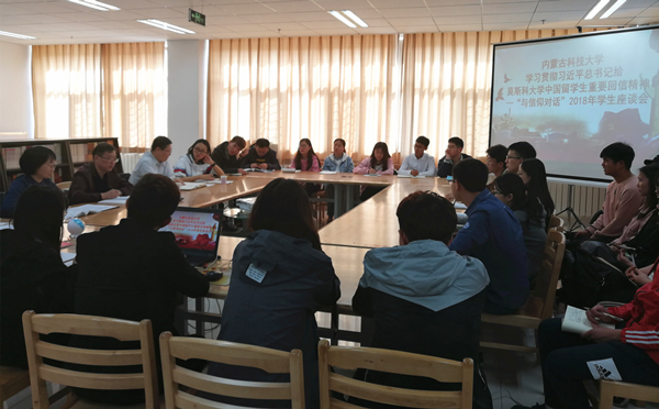 3月29日下午,我校在习近平新时代中国特色社会主义思想协同学习中心开展学习贯彻习近平总书记给莫斯科大学中国留学生重要回信精神--“与信仰对话”2018年学生座谈会。校党委常委、副校长杨建林,思想政治教育专门委员会、校团委相关负责人、学生组织代表、研究生代表、理论学习社团代表等35人参加本次活动。
