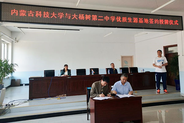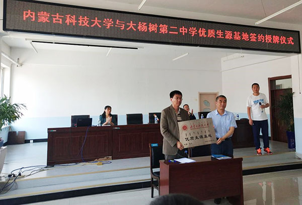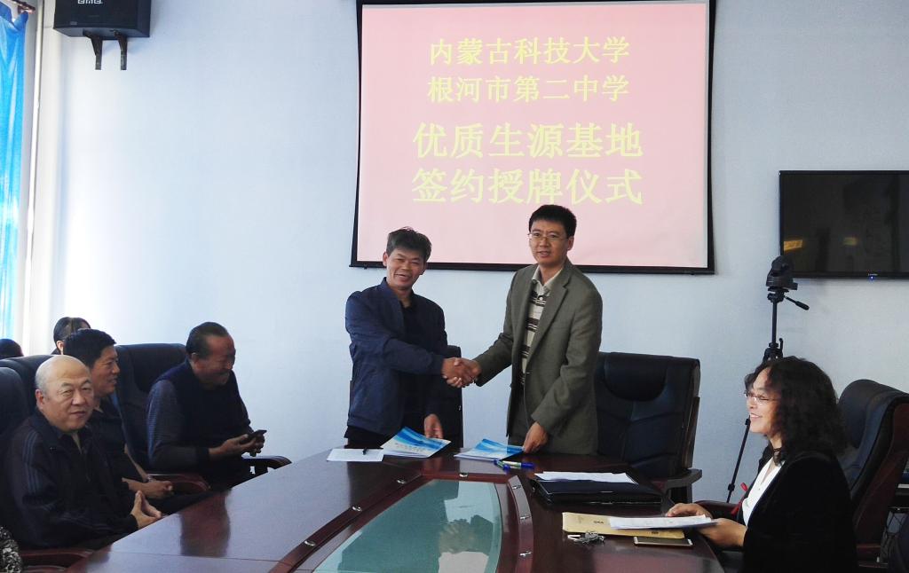 为进一步提高生源质量,加强我校与区内高中的校际联系,吸引优质生源报考我校,经广泛联系和精心筹备,5月29日和30日,化学与化工学院相关负责人一行前往呼伦贝尔市,分别与根河市第二中学和大杨树第二中学举行“优质生源基地”签约授牌仪式。