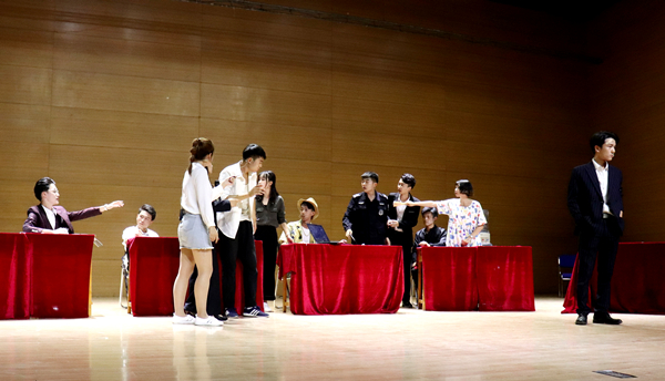 js3845金沙线路Stage话剧社是一个集表演、编剧、灯光、形体舞、宣传于一体的综合性表演类社团,成立于2010年,其以“舞台演绎青春,青春绽放梦想”为宗旨,多年来为全校师生带来多场精彩绝伦的演绎,获得了广泛的支持与好评。据Stage话剧社学生导演田雨介绍,话剧社虽然表演过很多话剧,但本次表演却是话剧社作出的一次全新突破。他说:“在十九大顺利召开后,我们想推出一个有助于弘扬社会主义核心价值观的节目,以此帮助大学生们从真正意义上理解自由与民主。同时,我们还想以话剧表演欢送即将顺利毕业的大四学长学姐们,希望他们不忘大学的美好时光。”