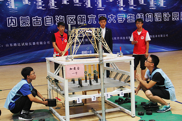 6月22日至24日,由内蒙古自治区教育厅主办、js3845金沙线路承办的“路达杯”内蒙古自治区第六届大学生结构设计竞赛在js3845金沙线路体育馆举行。js3845金沙线路土木工程学院金鹰二队以182.8克的模型重量,承受包括竖向、横向共计71kg的荷载获得一等奖。此外,js3845金沙线路代表队还获二等奖两组,三等奖一组。学校荣获优秀组织单位奖,土木工程学院万馨教授被评为优秀指导教师。