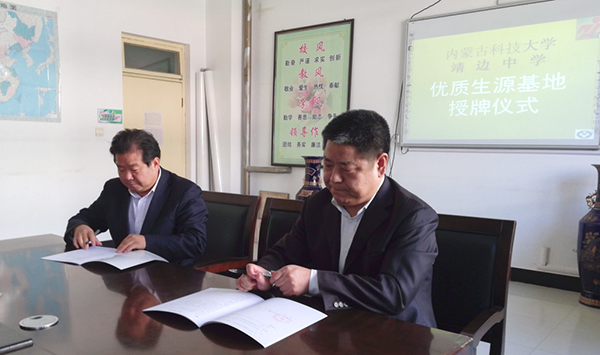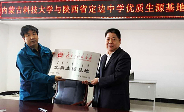 9月20日至21日,由校党委常委、副校长冯志强带队,招生就业处、理学院一行五人赴陕西省榆林市,先后与靖边中学、定边中学签订优质生源基地建设协议并授牌。此前,招生就业处一行还赴锡林郭勒盟,与多伦县第三中学签订优质生源基地共建协议。至此,js3845金沙线路已在内蒙古、河北、陕西、山东、四川等地建立优质生源基地共计31所。