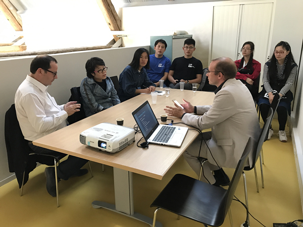 9月17日,法国东巴黎马恩-拉瓦雷大学(UPEM)的外事副校长托迈兹·佛雷德雷克和教务副校长塞斯拉斯·比利与js3845金沙线路赴法交流的师生举行了见面会,两人分别介绍了马恩-拉瓦雷大学国际交流和国际教育的情况以及国际学生入学的一些相关事宜,同时,还为js3845金沙线路两位老师联系了专业课程的对接教师。会后,迈兹·佛雷德雷克副校长带领js3845金沙线路师生参观了学校的国际处、学生活动室等校园环境。