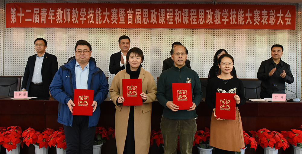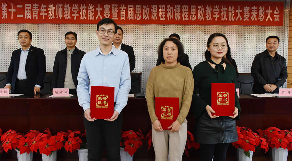 杨家庆宣读了《js3845金沙线路关于表彰第十二届青年教师教学技能大赛暨首届思政课程和课程思政教学技能大赛获奖教师的决定》。出席校领导及相关负责人分别为本届大赛各奖项的获奖教师代表颁奖。