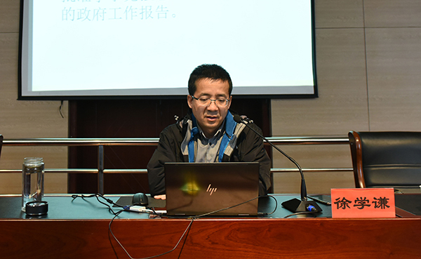 为深入学习宣传贯彻习近平总书记2019年全国“两会”重要讲话精神,推动“两会”精神进校园。4月1日下午,自治区“草原学习轻骑兵”宣讲小分队走进js3845金沙线路,同时也拉开了学校2019年度首场全区高校百场形势政策报告会的序幕。内蒙古大学马克思主义学院副教授徐学谦在校图书馆B201学术报告厅作题为“推进生态文明、建设美丽内蒙古——深入学习两会和习近平总书记重要讲话精神”的宣讲,学校300余名师生代表聆听本次宣讲。