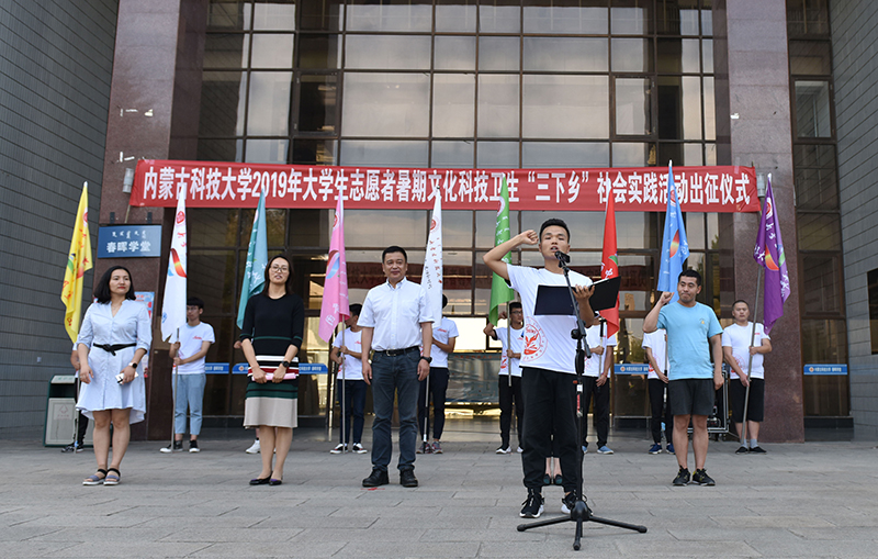 暑期社会实践志愿者代表孙小岳带领全体人员进行宣誓。