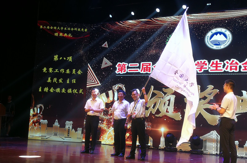 闭幕式上,全国大学生冶金科技竞赛工作委员会授予我校第三届全国大学生冶金科技竞赛的承办权,并完成了会旗交接仪式。