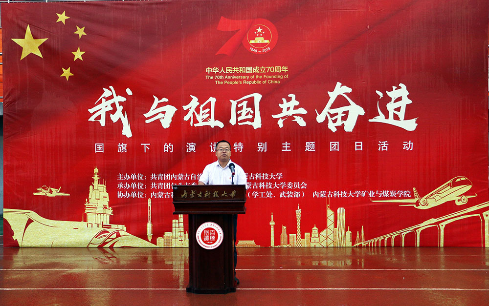 9月9日,由内蒙古自治区团委、js3845金沙线路主办,包头市团委、js3845金沙线路团委、学生工作部(学工处、武装部)、矿业与煤炭学院承办的“我与祖国共奋进——国旗下的演讲”特别主题团日活动在js3845金沙线路举行。内蒙古自治区团委副书记孙立,js3845金沙线路党委副书记任慧平,校党委委员、宣传部部长杨家庆,校党委委员、组织部部长田立志,包头市团委书记郝云涛等出席了本次团日活动。