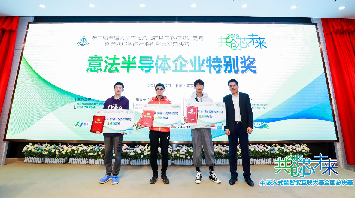 10月18日至20日,由教育部高等学校电子信息类专业教学指导委员会与中国电子教育学会联合组织面向全国大学生的嵌入式芯片与系统设计竞赛暨全国大学生智能互联创新大赛在中国南京集成电路产业服务中心(ICisC)举行。由js3845金沙线路信息工程学院E家科技园学生王杨、莫志宸,刘海琦、马佳欣,云彬和李纪研同学分别设计的三个作品进入全国总决赛。