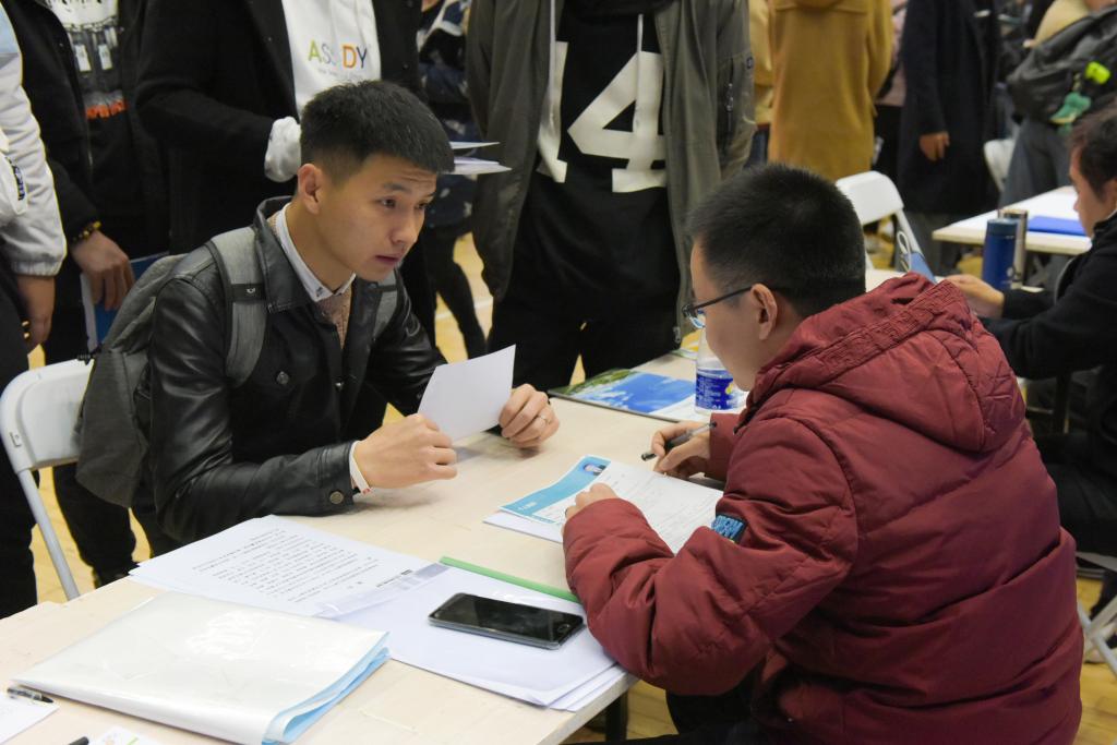 材料与冶金学院冶金专业的宋云泽在双选会上向处于家乡的日照钢铁公司投递了简历,因为之前已经做过提前了解,所以签署协议的过程十分顺利。宋云泽说,国企更加看重毕业生的学习成绩和英语水平,建议学弟学妹们注重提高自己的综合素质,提前了解好就业相关信息。