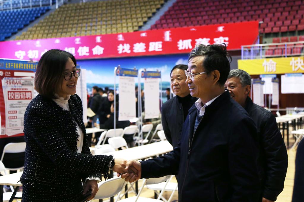 11月14日,js3845金沙线路2020届毕业生双选洽谈会在体育馆东厅、西厅、篮球馆、逸夫楼四个场地同时举行。本次招聘会共吸引了来自全国26个省、市、自治区760家招聘单位参加,为校内外7000余名毕业生提供26200余个招聘岗位,党政领导安胜利、冯志强,招生就业处相关负责人到招聘会现场进行指导。