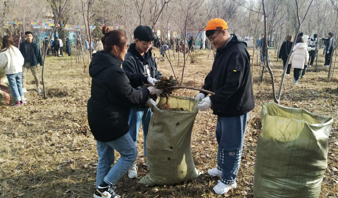 本次活动主要是打扫并收集落叶,将落叶赠与冬天由于积雪而放牧受阻饲料缺乏的困难牧户,同时能有效回收利用大自然资源。秋风飒爽,阵阵凉意,各党支部同学们通力合作,以小组为单位积极配合,分工明确,尽管叶子潮湿,杂草羁绊,收集过程中很费力气,但是,同学们并没有因此退缩,反而在欢声笑语中将叶子装入一个又一个袋子。