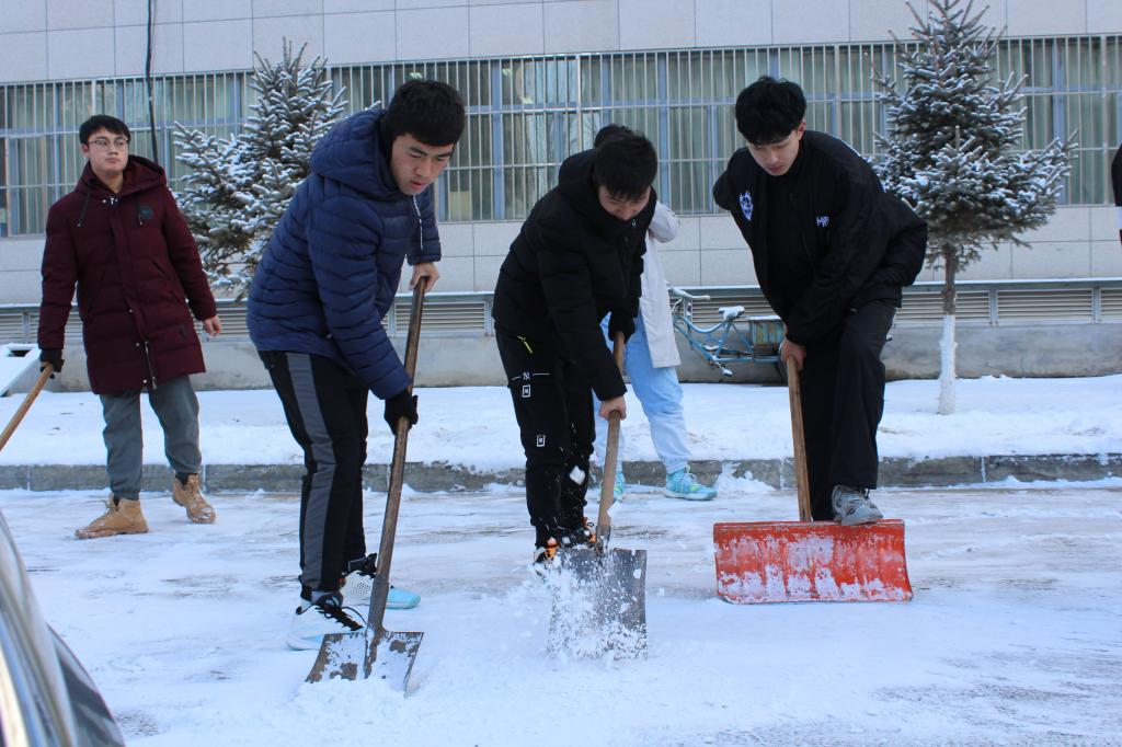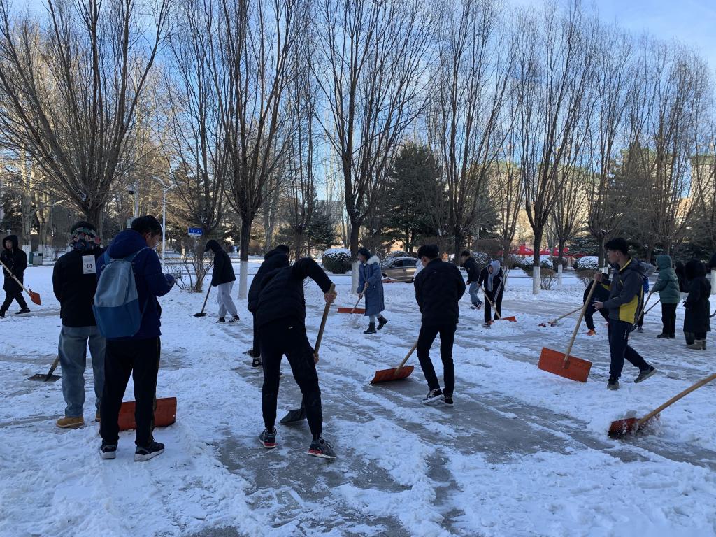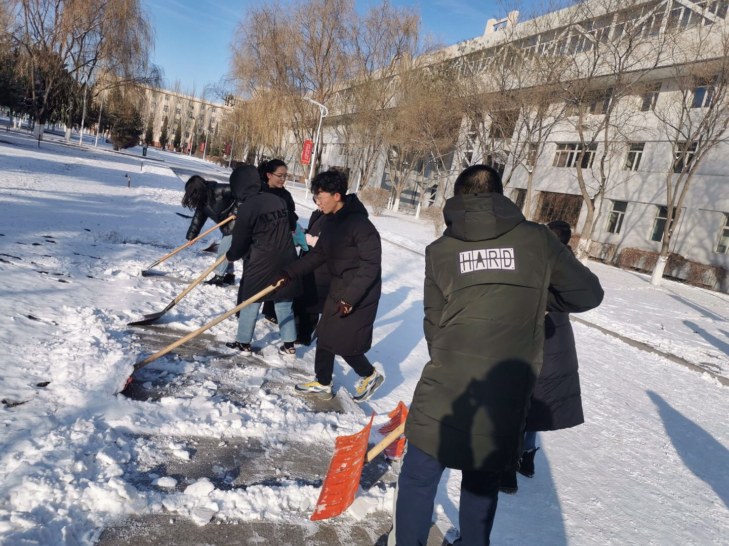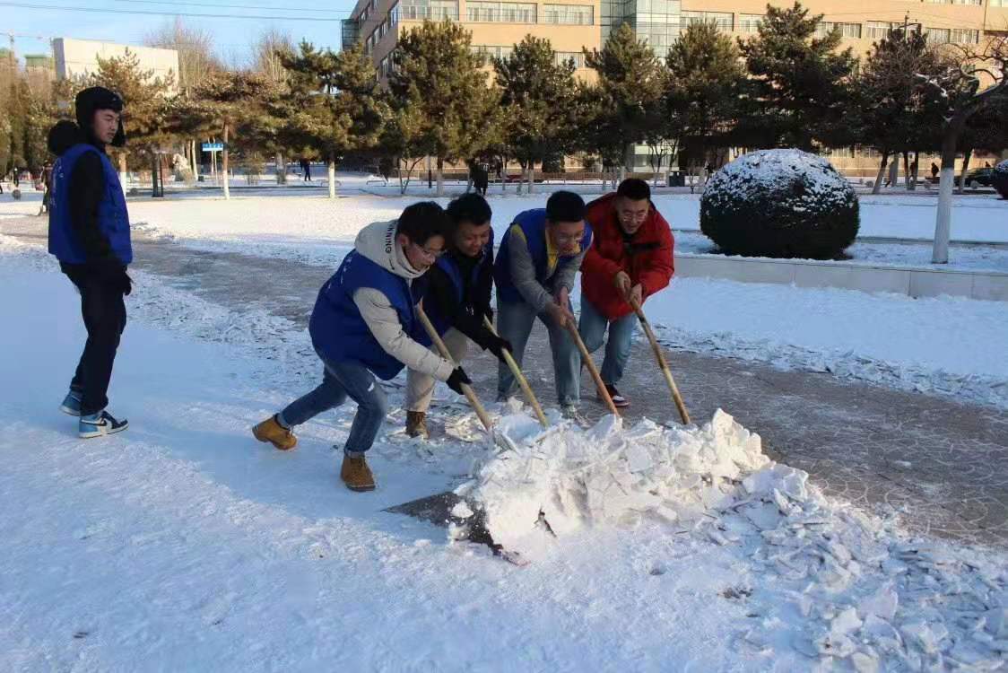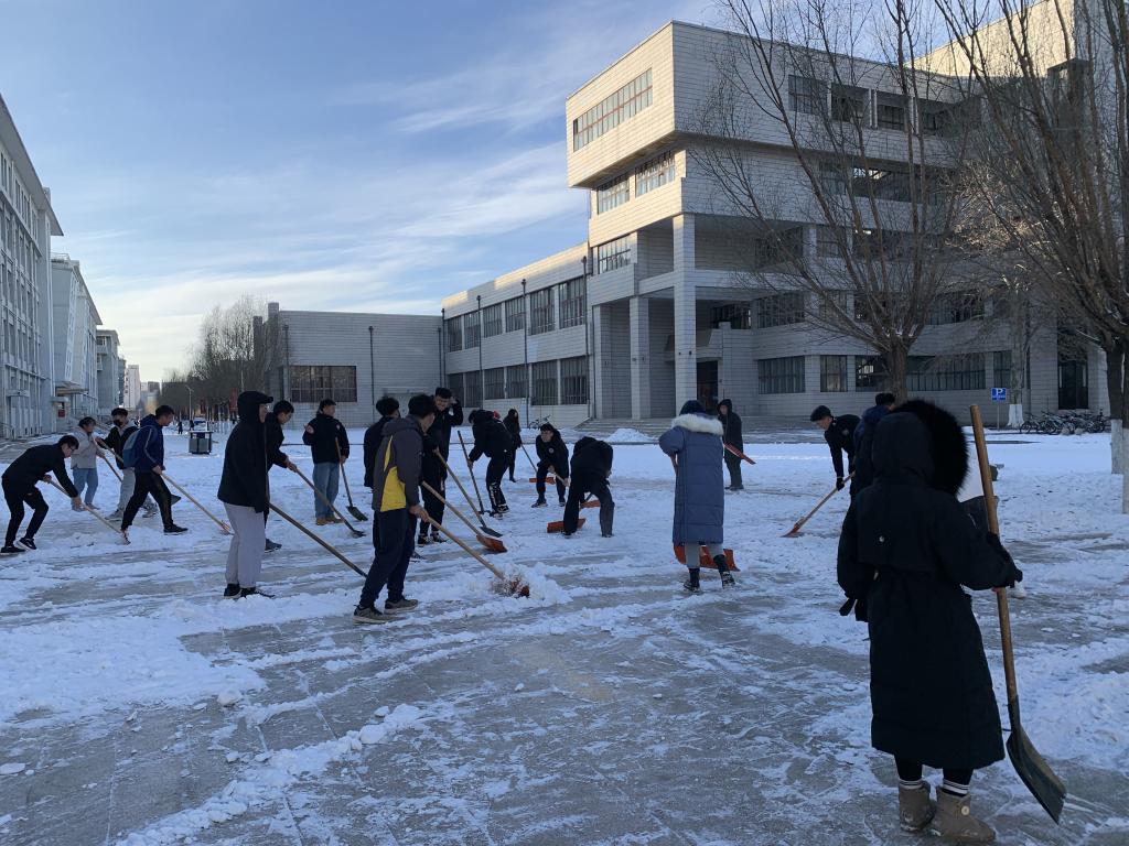 突如其来的降雪让js3845金沙线路校园银装素裹。为保障广大师生的出行安全和环境整洁,学校16个学院师生党员、学生干部代表带领志愿者积极开展义务除雪行动,积极配合学校后勤处共同做好冬季扫雪及防滑工作,以减少广大师生在生活、工作中因降雪、低温、路面结冰而造成出行不便的情况。尽管天气严寒,但广大师生团结协作、干劲十足,用推雪板、铁锹、扫帚等工具,清扫校园主干道上的道路结冰。在良好的合作与配合中,大家高效率地完成了扫雪任务,为保障学校校园安全贡献出了一份力量。