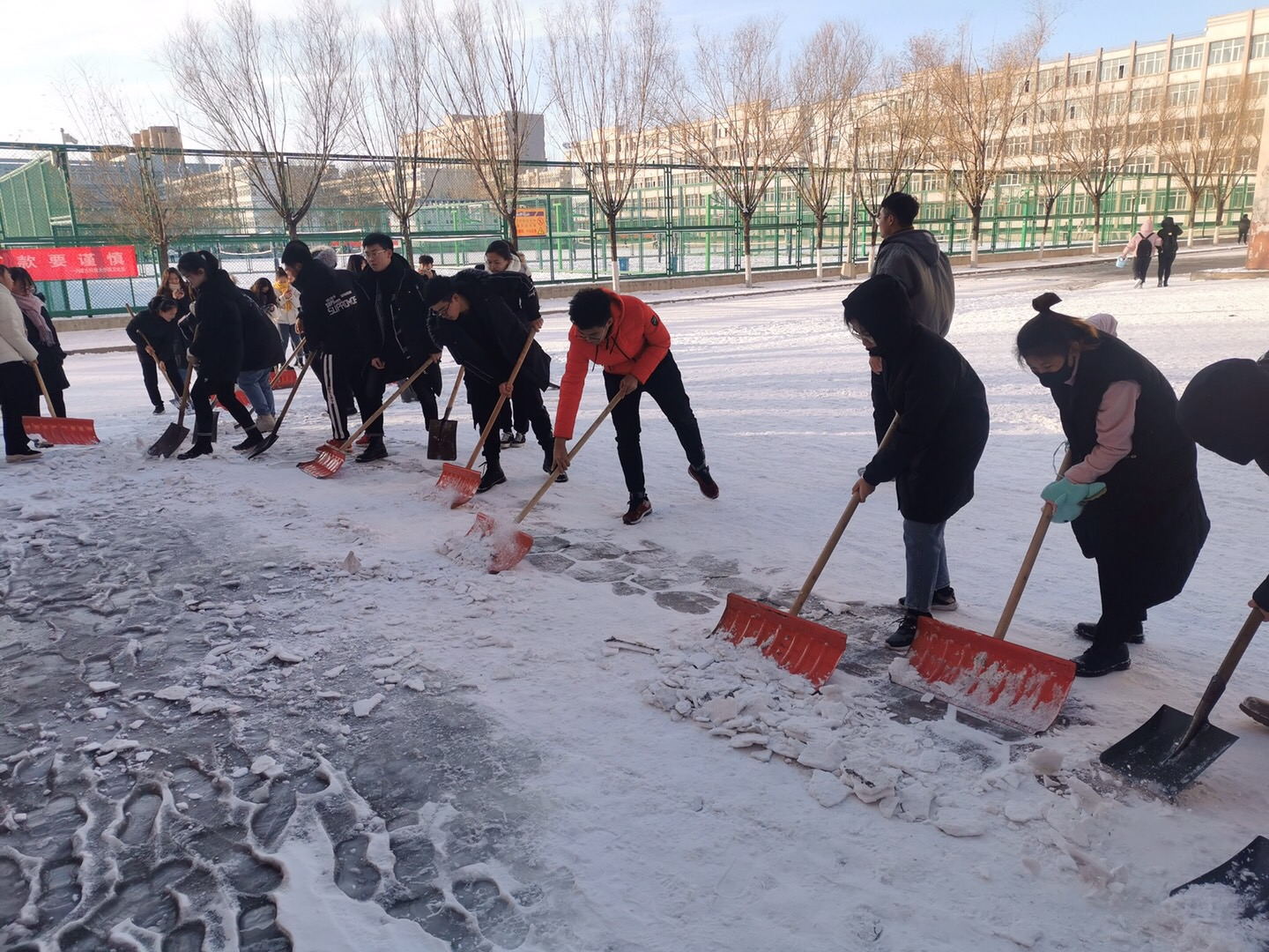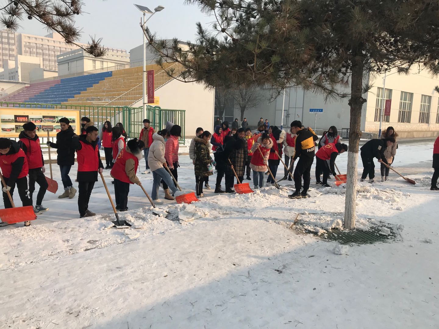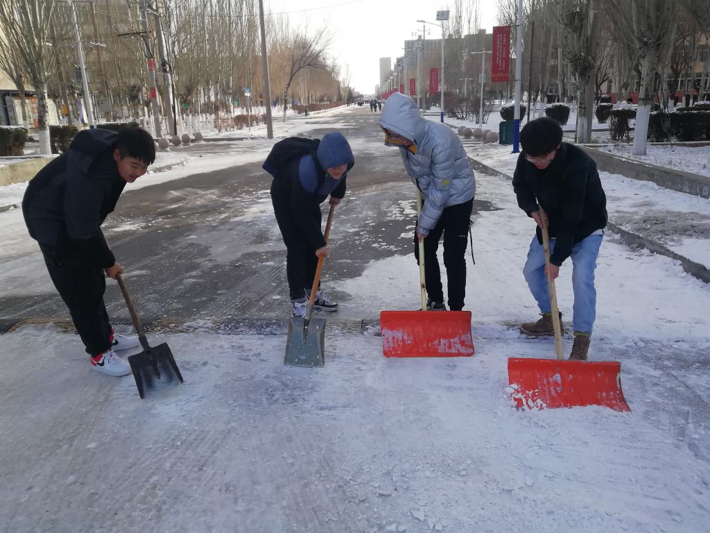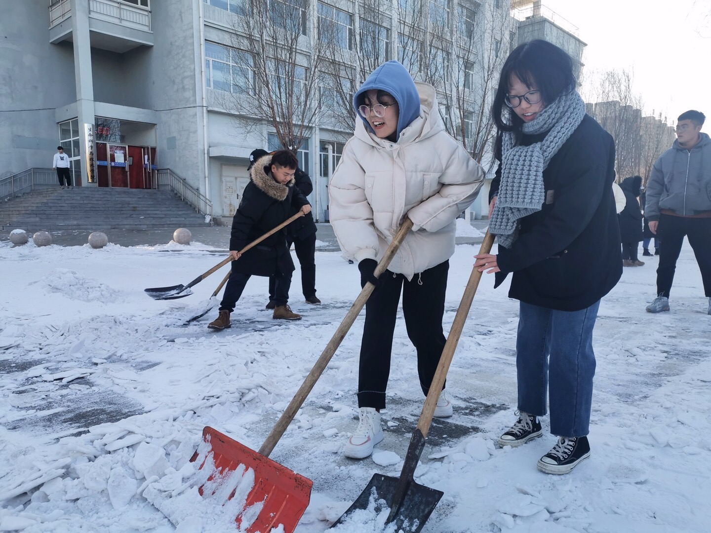 突如其来的降雪让js3845金沙线路校园银装素裹。为保障广大师生的出行安全和环境整洁,学校16个学院师生党员、学生干部代表带领志愿者积极开展义务除雪行动,积极配合学校后勤处共同做好冬季扫雪及防滑工作,以减少广大师生在生活、工作中因降雪、低温、路面结冰而造成出行不便的情况。尽管天气严寒,但广大师生团结协作、干劲十足,用推雪板、铁锹、扫帚等工具,清扫校园主干道上的道路结冰。在良好的合作与配合中,大家高效率地完成了扫雪任务,为保障学校校园安全贡献出了一份力量。