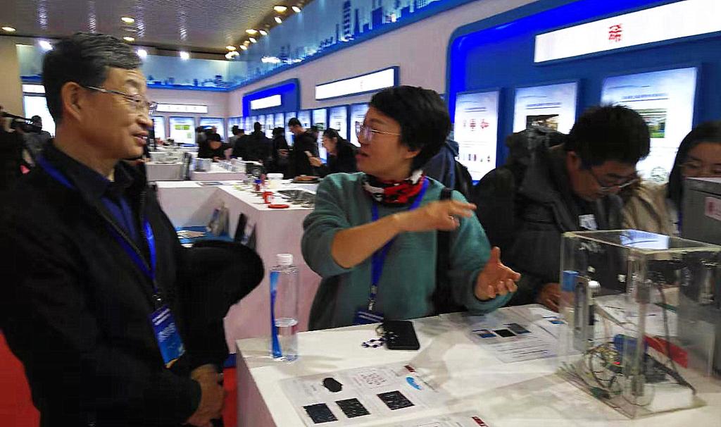 现场我校设实物展台,多家企业到访进行咨询、洽谈,并期盼会后能进一步地洽谈、合作。js3845金沙线路工程训练中心教师李霞结合其在移动物联网锁控系统和智慧光交箱方面的研究,向内蒙古自治区主席布小林介绍了智慧城市理念和实践,及目前科研成果和下一步的推广计划。听了李霞的介绍,布主席表示,自治区政府会继续为供需双方搭建融合、对接、互通的平台,科技成果转移转化对接会要常态化。