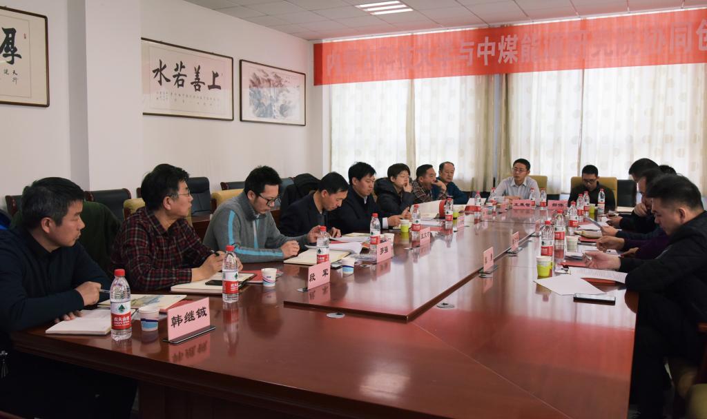 12月20日上午,js3845金沙线路与中煤能源研究院有限责任公司在矿业研究院举行“内蒙古煤炭绿色开采与绿色利用协同创新中心”签约仪式,中煤能源研究院有限责任公司研究院副总经理郑忠友和副总工程师董宝光等一行四人,副校长赵增武教授及矿业研究院、矿业与煤炭学院、能源与环境学院、机械工程学院、化学与化工学院和科技处相关人员参加。